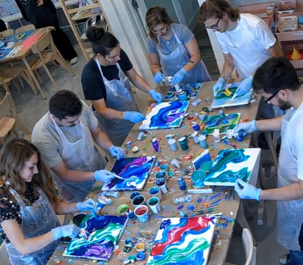 - Group projects – Paint pour group activity; Group painting/Decoden